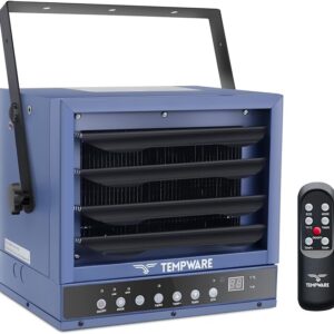 TEMPWARE Electric Garage Heater, 7500-Watt Digital Fan-Forced Ceiling Mount Shop Heater with Full-Function Remote, 240-Volt Hardwired Heater with 12-Hour Timer, Ideal for Workshop
