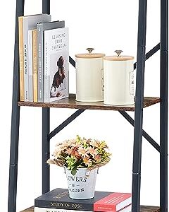 Hoctieon Industrial Ladder Bookshelf, Multifunctional Ladder Shelf, 5-Tier Tall Bookshelf, Open Ladder Shelf Bookcase, for Living Room, Home Office, Kitchen, Bedroom, Metal Frame, Rustic Brown – See Desc.
