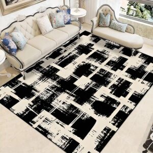 Area Rug Seamless Minimalist Plaid Pattern Bold Black Crossing Lines Stripes 3D Rugs Non-Slip Mat Throw Rug Yoga for Living Room Playroom Classroom Nursery Decor Outdoor Floor Carpets 5×8 ft