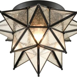 DAYCENT Boho Moroccan Seeded Glass Moravian Star Light Fixture Ceiling Flush Mount Hallway Kitchen, Black, 15 Inches ***PLEASE SEE DESCRIPTION***