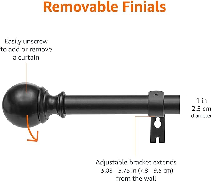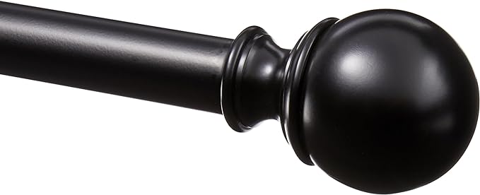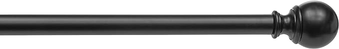 1-Inch Curtain Rod with Round Finials, 1-Pack, 72” to 144” Black
