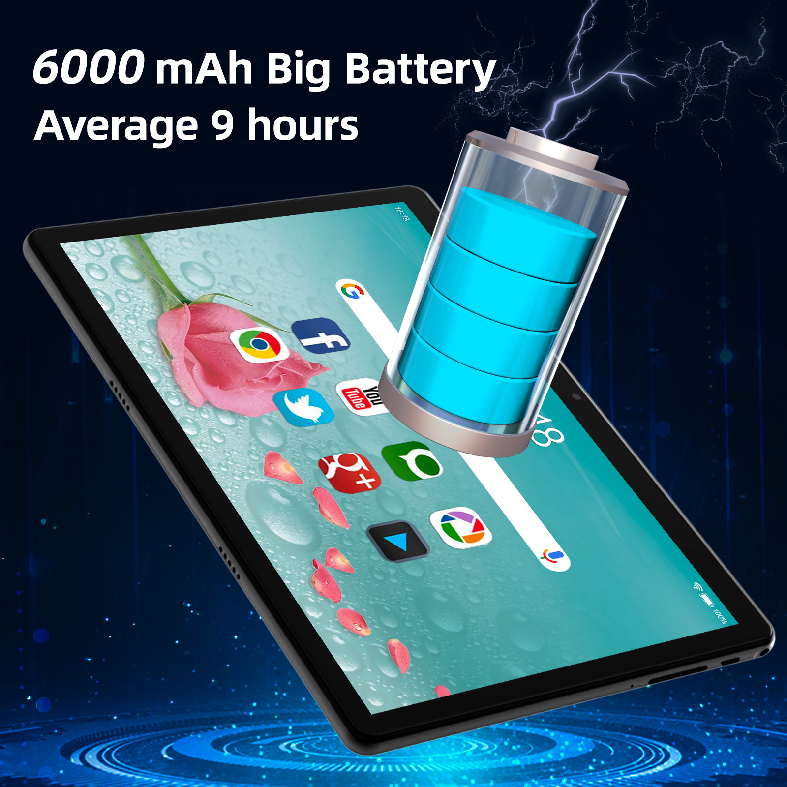 - EXTENDED BATTERY LIFE: Featuring a robust 6000mAh battery, this 10-inch tablet offers up to 8 hours of uninterrupted use for reading, browsing, watching movies, or gaming. Its lightweight design ensures you can enjoy it on the go, anytime, anywhere.