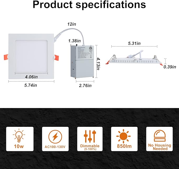 - 5%-100% Smooth Dimming:Square led ceiling light compatible with the majority of the dimmers on the market, you can smoothly dim this slim LED downlight from 100%-5%.CRI 85+ for vibrant colors, creating a pleasing sense of space.