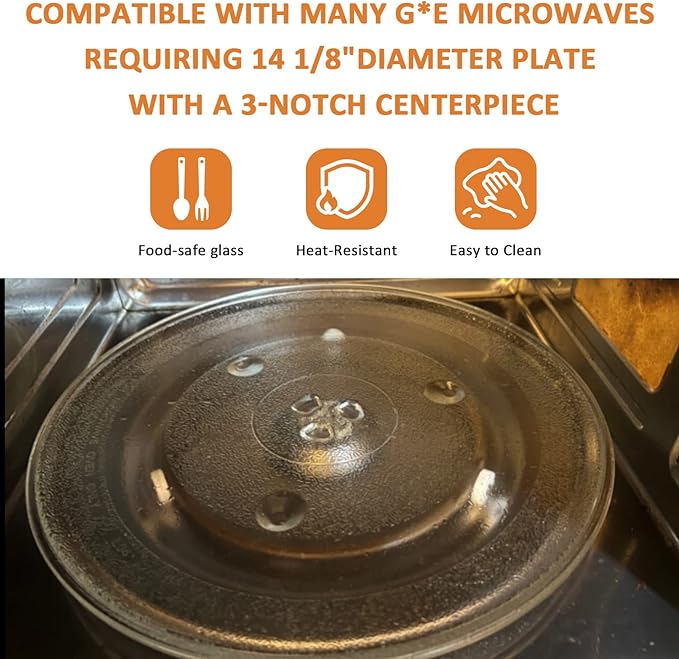 - Wide Application – WB49X10063 14 1/8 inch microwave glass turntable tray plate replacement for G.E/sam-sung microwave oven, 14.2 inch Microwave glass turntable tray plate replace WB39X10038 WB49X10030 WB49X10096 WB49X10141 WB49X10193 DE74-20002B DE74-20002A DE74-20002 DE74-20002D 2084106 AP4231156 PS4234950 EAP4234950, etc. Please check model or reach out to us before ordering to ensure compatibility