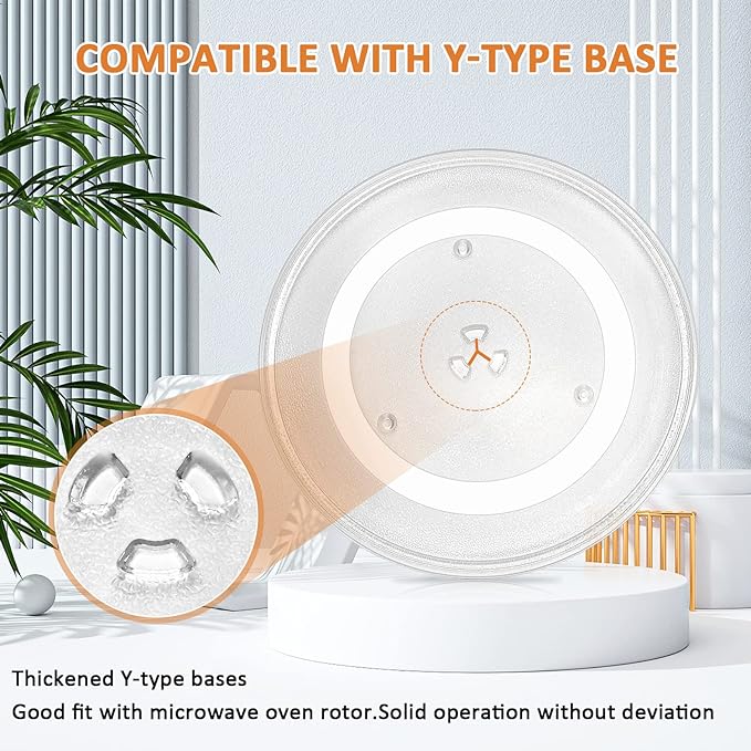 - 14 1/8 inches (360mm) glass plate made of thick food-safe glass, 3 grooves at the bottom and microwave glass plate replacement back has irregular pattern, Better anti-slip resistance, arc design can prevent accidental cuts, and keep evenly rotate food during the cooking process, ensuring that your food is cooked evenly and thoroughly. WB49X10063 microwave glass turntable tray plate can help you to fixes the following symptoms:① broken ②uneven heating ③there’s no heat