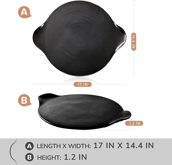 17″x14.4″ Large Pizza Stone for Oven, Grill, Smoker, Non-Stick Glazed, Made of 100% Natural Cordierite Ceramic, Perfect for Pizza and Anything You Like, Unbreakable Packaging(Black 5.2LB)
