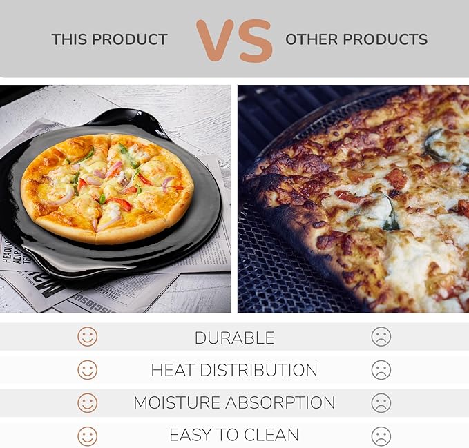 - Special Workmanship and Durable:Each pizza stone is manually fired at ultra-high temperatures.No cutting corners made the pizza stone weigh up to 5.2 pounds.