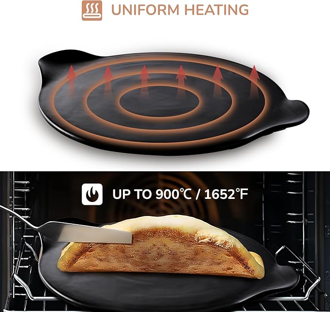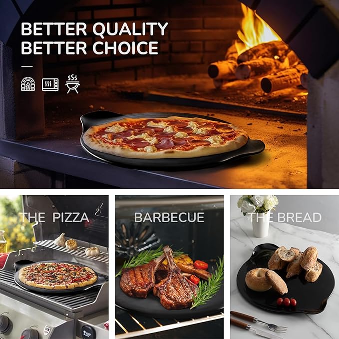 - High Quality Material: This pizza stone is made of high-quality natural cordierite,resistant up to 900℃ or 1652℉.Safe for Oven, Grill, Smoker.