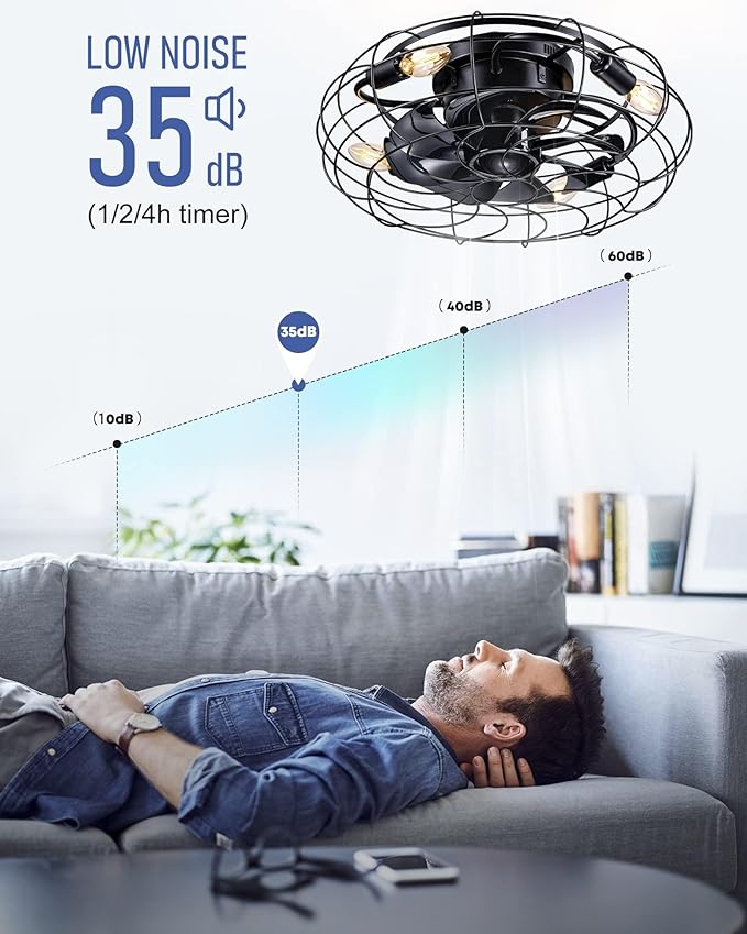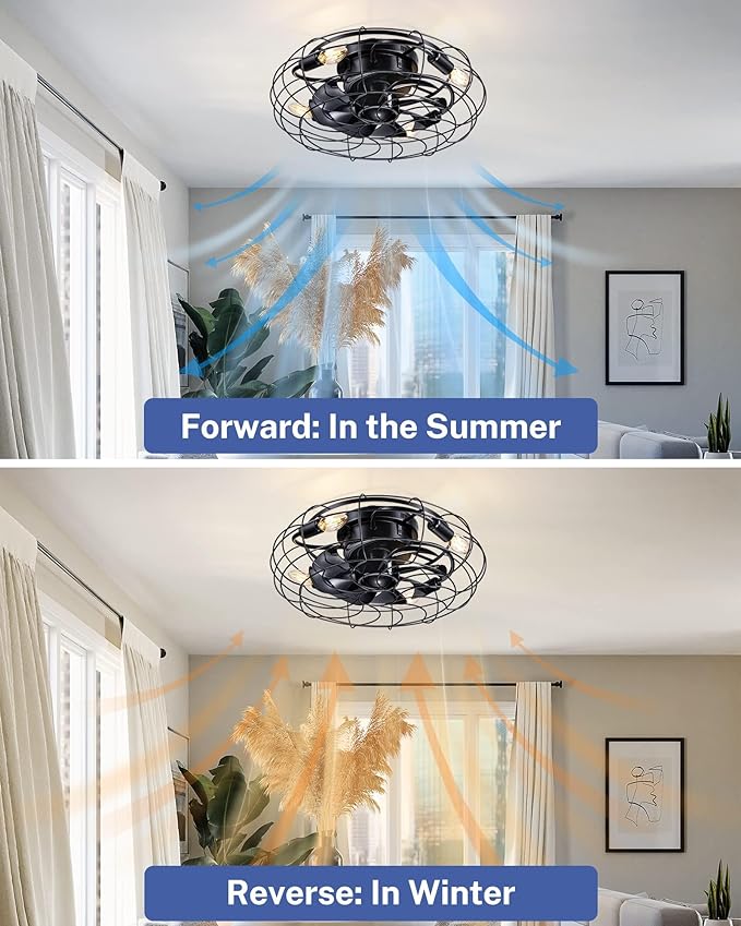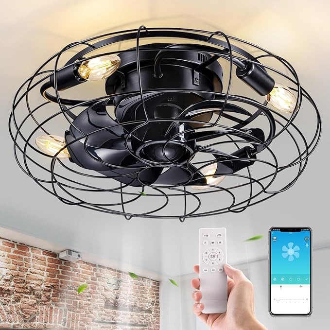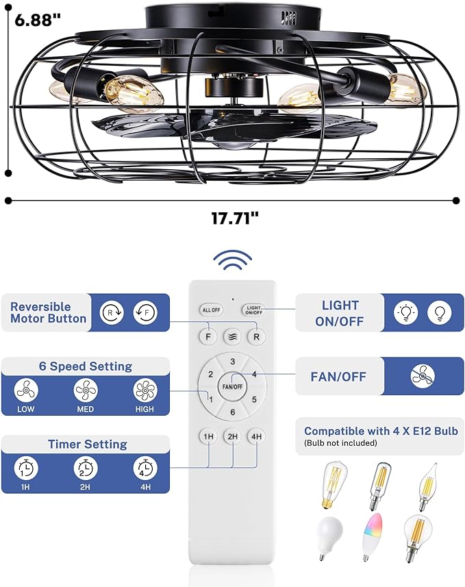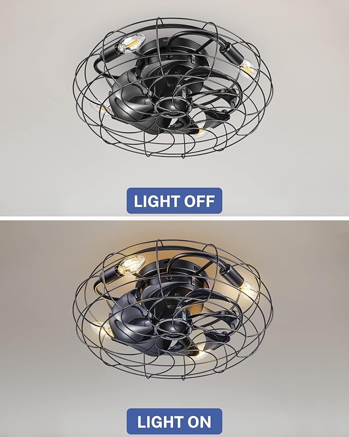 - 【Unique Looks & Safe Design】This durability flush mount caged ceiling fan with lights looks very nice, combining the best of modern and classic. While black ABS blades hidden in the cage(17.7×17.7×6.88 inch)to avoid accident caused by getting involved in the blades ,protect children from accidental touch to ensure safety.