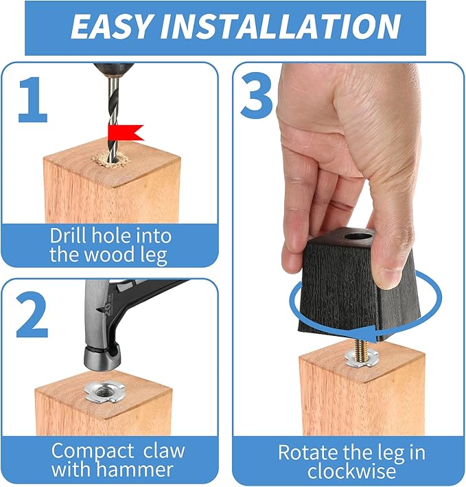 - *Easy & Fashion – The plastic feet are easy to install without complicated procedures. The minimalist design of the furniture legs refreshes your furniture and gives a new look for your home.