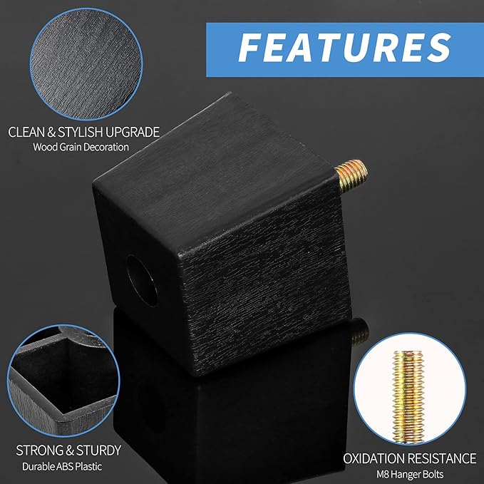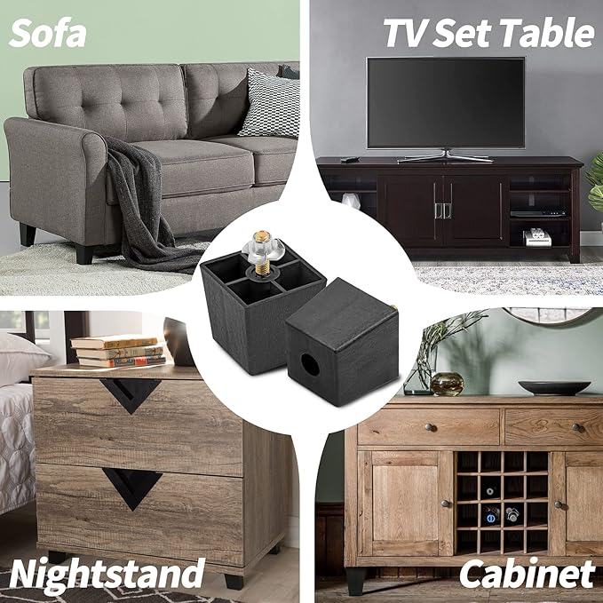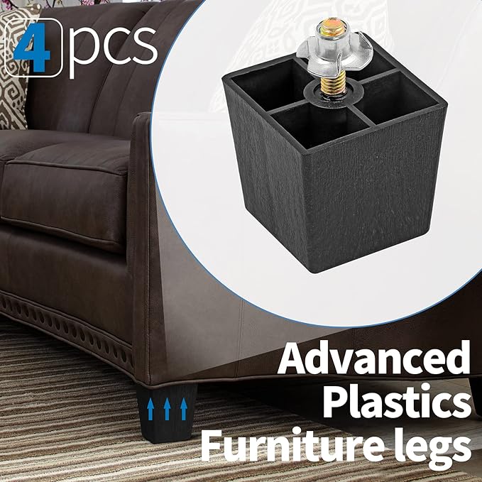 - *Great Quality & Durable – The black furniture legs are made of high quality plastic with high hardness, strong impact and abrasion resistance, which are strong enough to support heavy furniture.