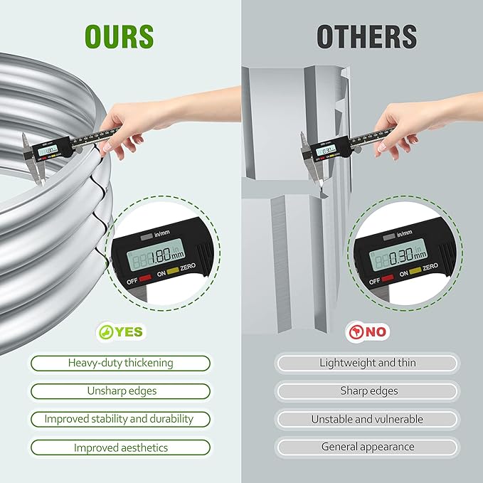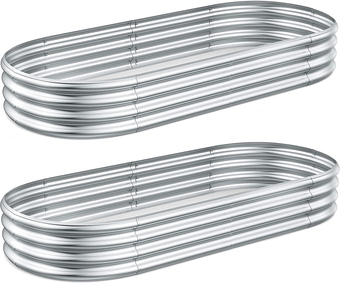 - 🍀 DURABLE RAISED GARDEN BEDS OUTDOOR: Made of stable thickened galvanized steel raised garden bed, double-layer anti-corrosion galvanizing and oval structure design, which is more beautiful, is not easy to loose, and the interface will not Deformed to keep your garden bed for long time use.