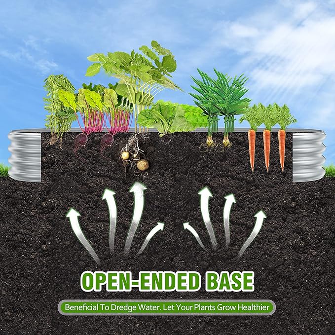 - 🍀 RAISED GARDEN BEDS: This galvanized steel raised garden bed is designed with an open base, opening bottom to prevent water buildup and plant root rot, and will protect your plants against growing weeds, better absorb nutrients.