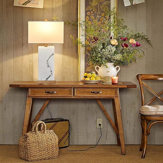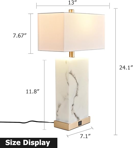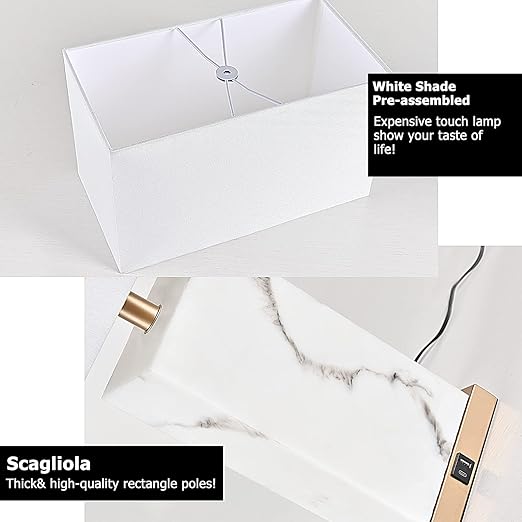 24″ White Table Lamp Set of 2 Touch Control, Lamps for Living Room with USB, 3-Way Dimmable Bedside Nightstand Lamps, Gold Lamp Set for Bedroom, Marble Base Side Lamp for End Tables, Bulbs Included