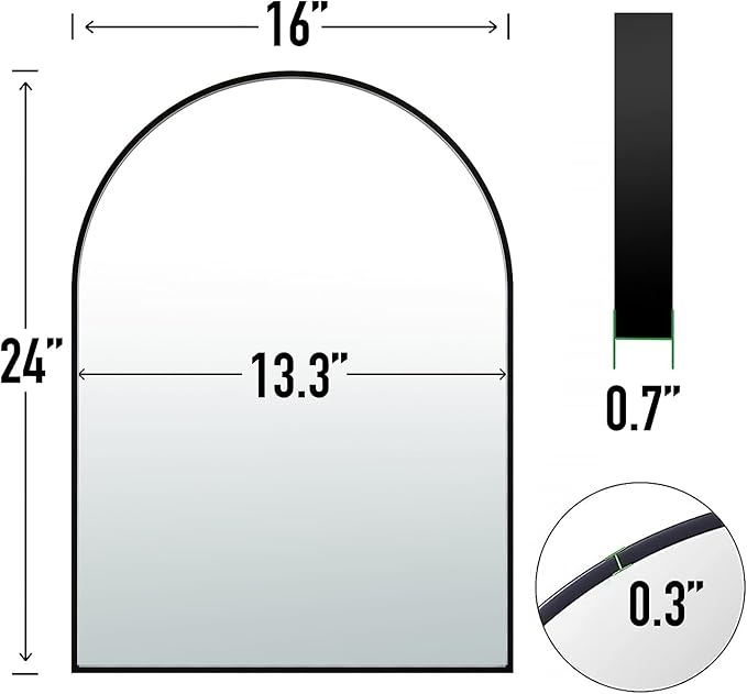 • Modern frame mirror: The classic clean and lines of this mirror accent any room or hallway in modern style. Featuring an ultra-thin (0.3 x 0.7 inch) metal frame in deep profile, adding depth and bright to a room and give it more life.