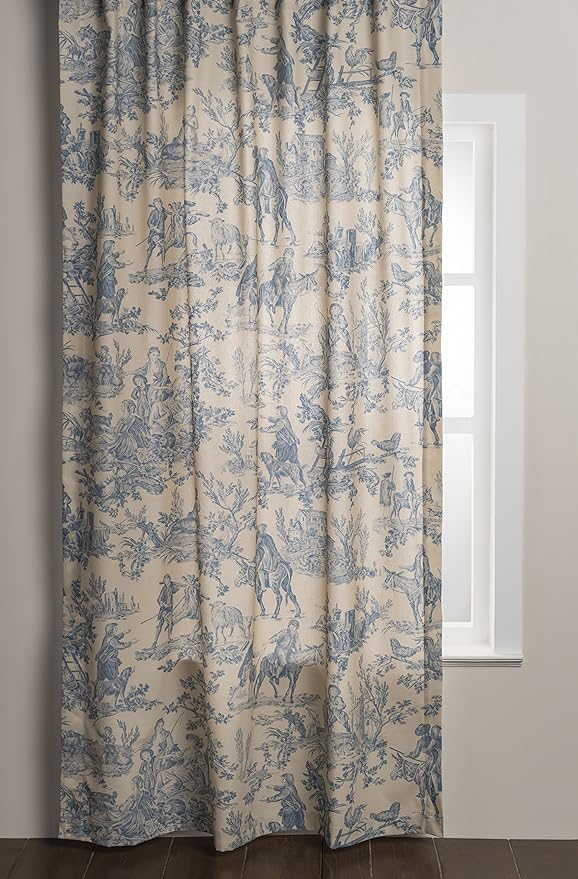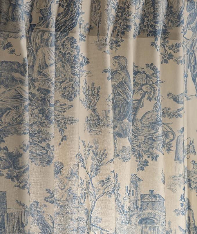 ((2of2)) Maison d’ Hermine Curtains 100% Cotton Curtain Single Panel Easy Hanging with a Rod Pocket & Loop for Farmhouse, Office & Living Rooms, The Miller – Blue – Spring/Summer (50″x84″)