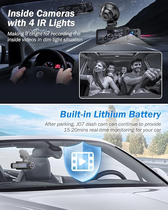 • 4 IR Cabin Light & Clearer Night Vision: Thanks to 6-glass lens, big aperture and night vision technology, the J07 car camera performs well in color precision and clarity whether day or night. 4 IR Light of the dashcam face to the cabin, accurately capture clear footage of the driver and passengers even when the cabin is under low light conditions or completely dark, ideal for rideshare drivers such as Uber, Lyft, and Taxi