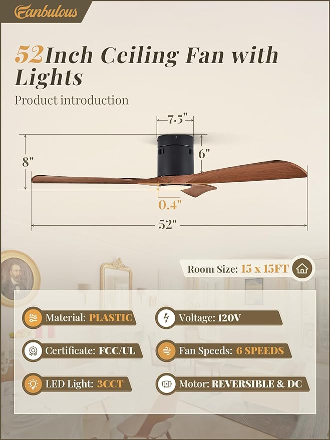 - 🍃DC MOTOR TECHNOLOGY: The Fanbulous ceiling fans operates with energy savings, powered by advanced reversible DC motor technology. In the summer, bask in the cool breeze as the fan\’s forward airflow. Come winter, engage the reverse function to ensuring a cozy and evenly heated space.