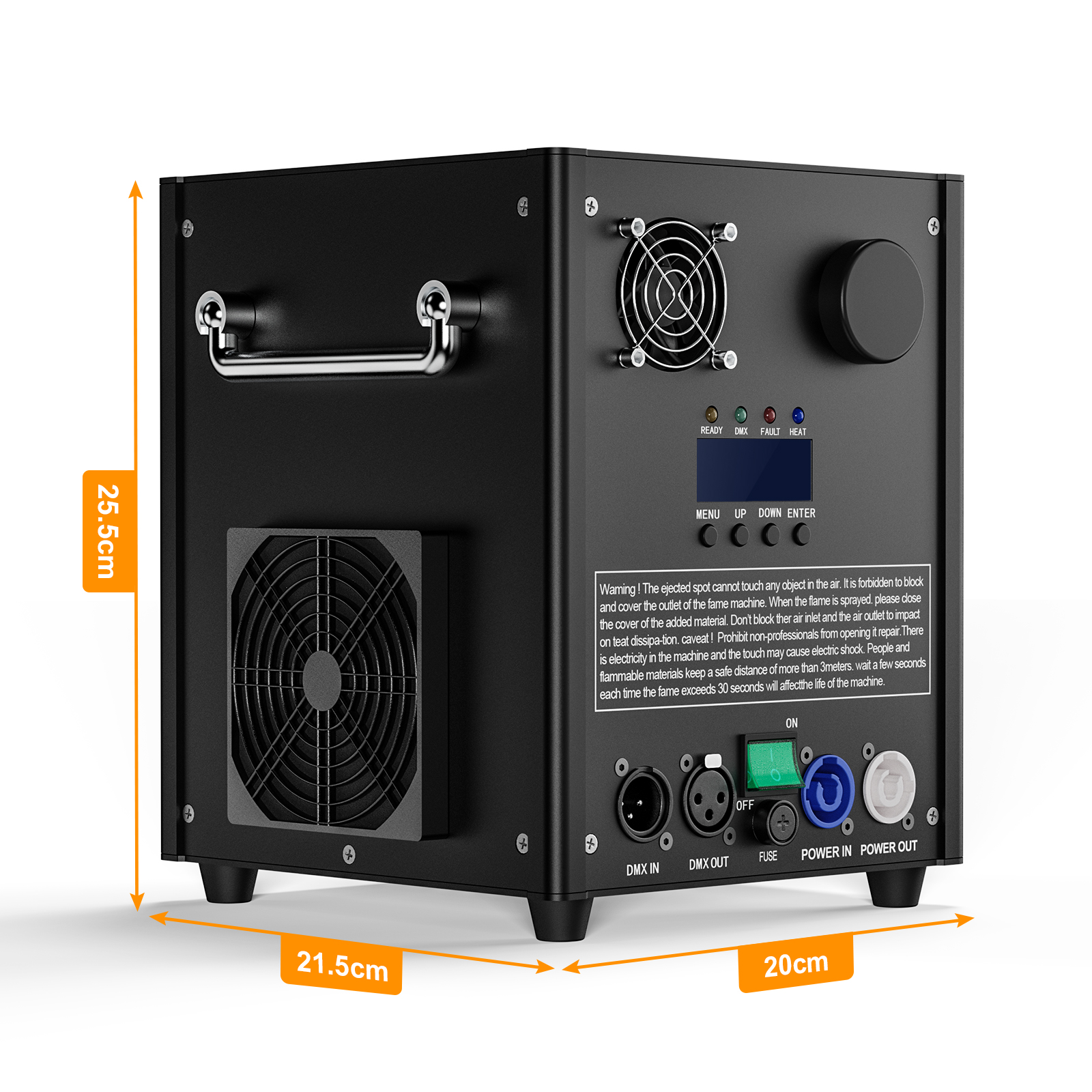 - Considerate : This cold spark machine is made of aluminum alloy, which is sturdy and durable, pretending its using life. Besides, it is equipped with heat dissipation to avoid danger during your use. Moreover, with humanized carrying handles, you can take the machines everywhere and enjoy the performances.