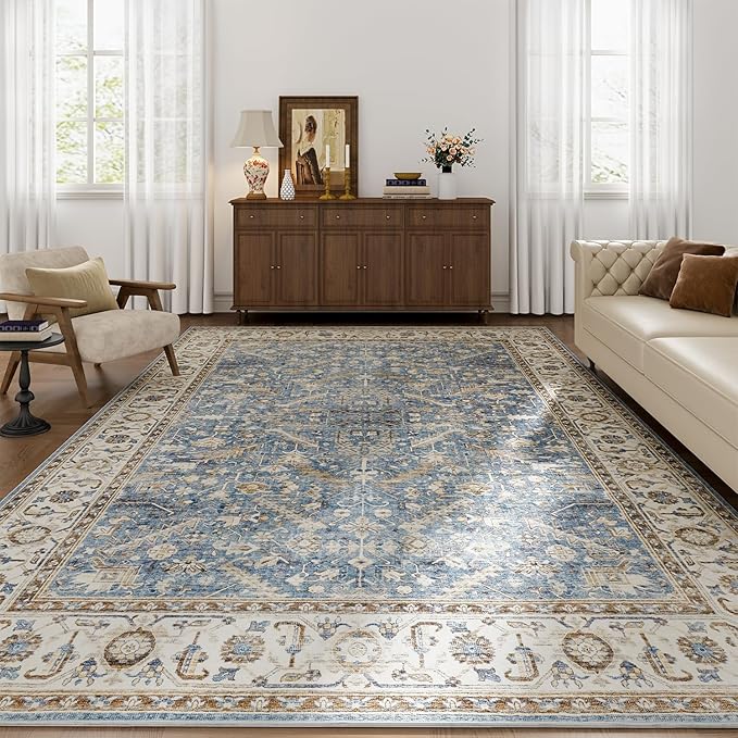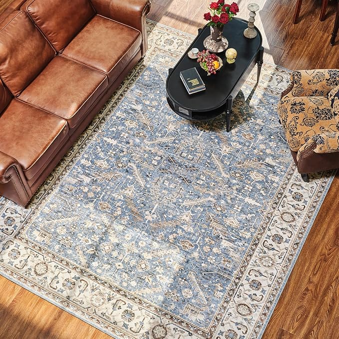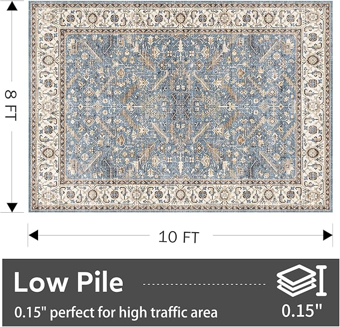 8×10 Area Rugs for Living Room Vintage Rug 8×10 Area Rug Machine Washable Rugs Non Slip Low Pile Carpet Bohemian Distressed Area Rug for Living Room Bedroom Dinning Room Indoor