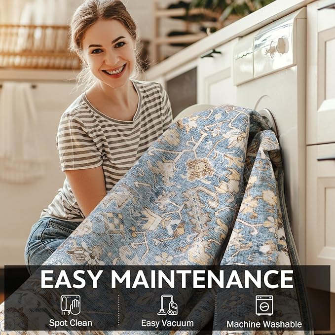 • Machine Washable Rug: You no longer have to worry about spills or stains ruining your rug. These rugs are easy to clean and maintain.Dust and dirt on the surface can be wiped clean with a sponge rag, but regular deep cleaning is recommended, and deep cleaning can be done by machine washing or vacuuming.