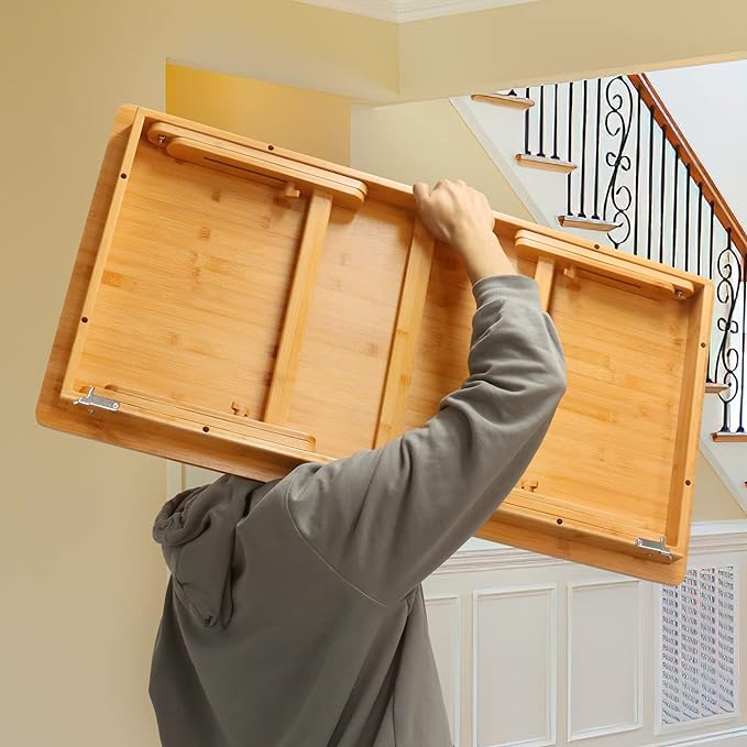 - Appearance Size: Desktop size of 33.5\”Lx17.7\”W x 11.8\”H large laptop desk, you have enough room to put your legs without bumping the tray top ,strong and durable.