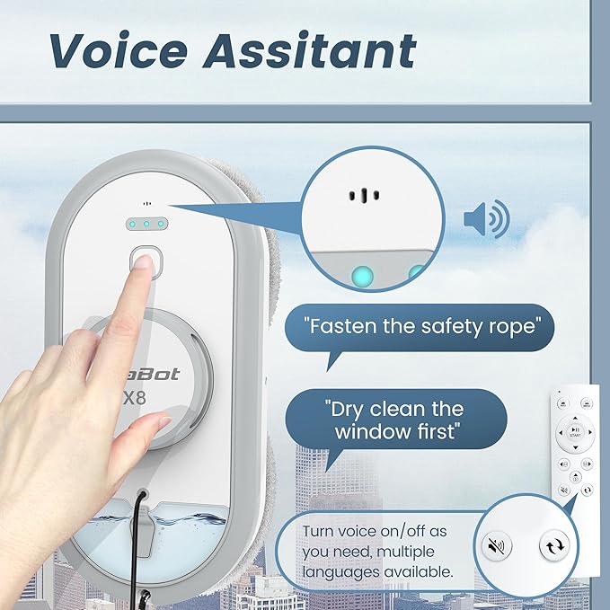 AlfaBot Window Cleaning Robot with Dual Water Spray, X8 Robot Window Cleaner with Double-Side Water Spray and Voice Assistant, Smart Window Vacuum for Interior/Exterior Highrise Windows