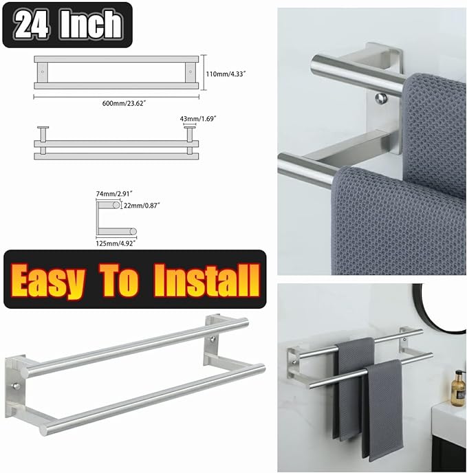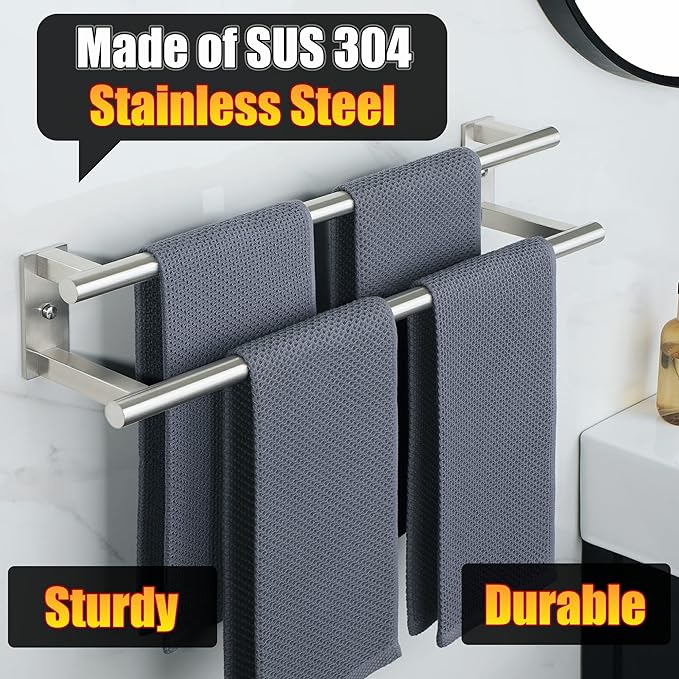 Alise Bathroom Double Towel Bar, 24 Inch Wall Mount Towel Holder, Towel Racks for Bathroom