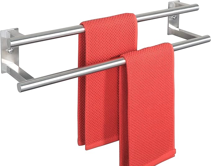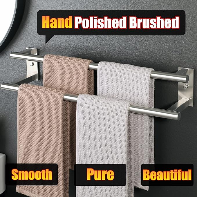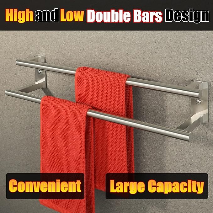 - 【Double Layer Design】- The towel rod adopts a high and low double layer design, so that the towels hanging from the upper and lower bars do not interfere with each other, with plenty of space, which can provide good air circulation and keep your towels dry at all times.