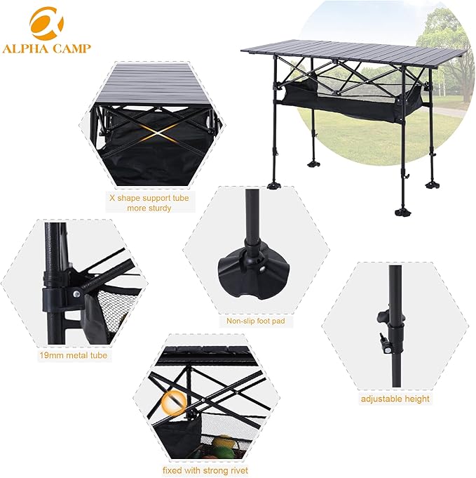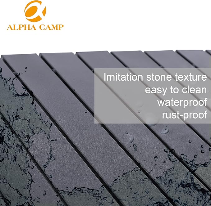 - Stable Design&Waterproof:X shape support tube more sturdy. Flexible plastic feet make it more stable even in uneven ground. Also, the portable table is made of aluminum alloy, which is imitation stone texture, rust-proof, waterproof, easy to clean up