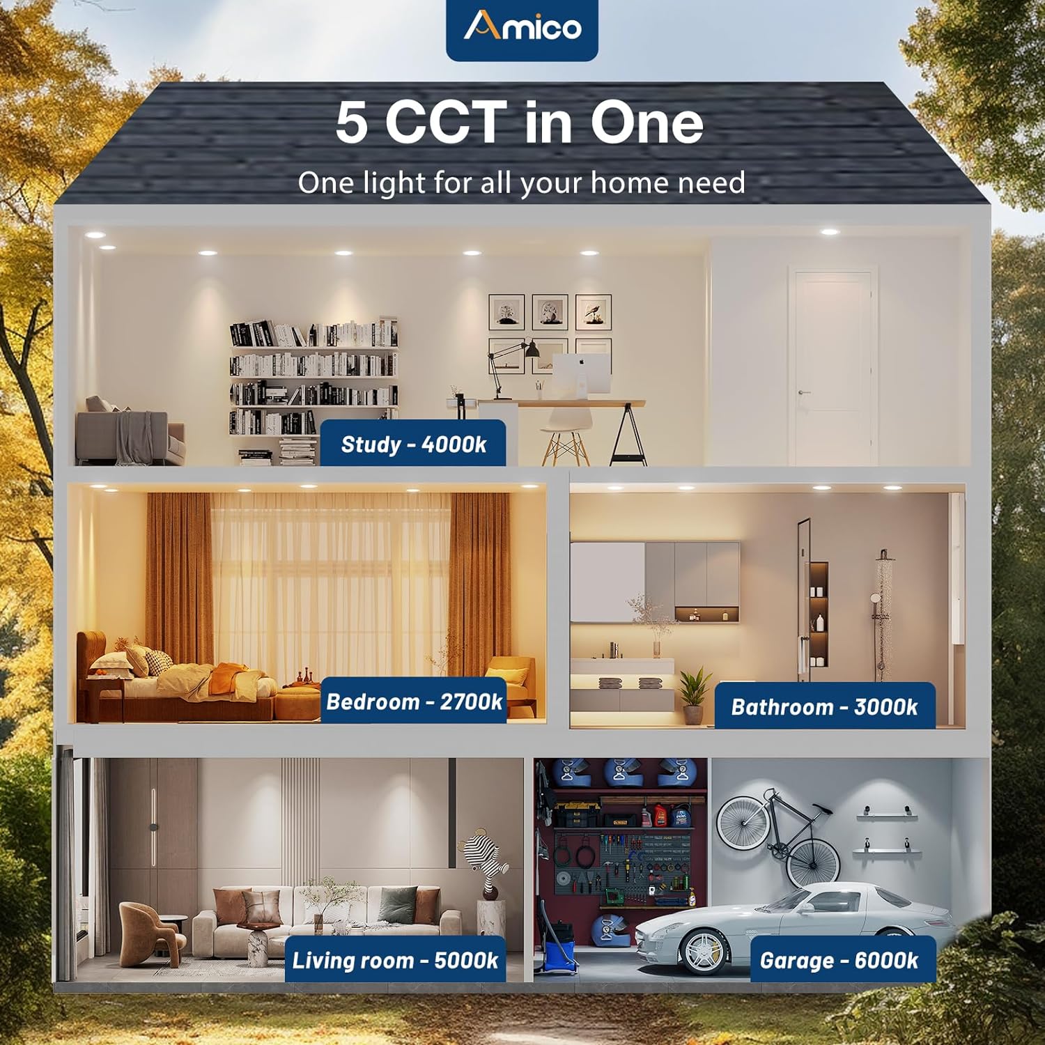 Amico 24 Pack 5/6 Inch LED Disk Lights, Dimmable Flush Mount Ceiling Disc Lights, 2700K/3000K/4000K/5000K/6000K Selectable, 12W Eqv 110W, 1050LM, Low Profile Surface Mount Ceiling Lights, ETL&FCC