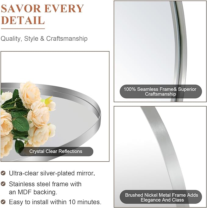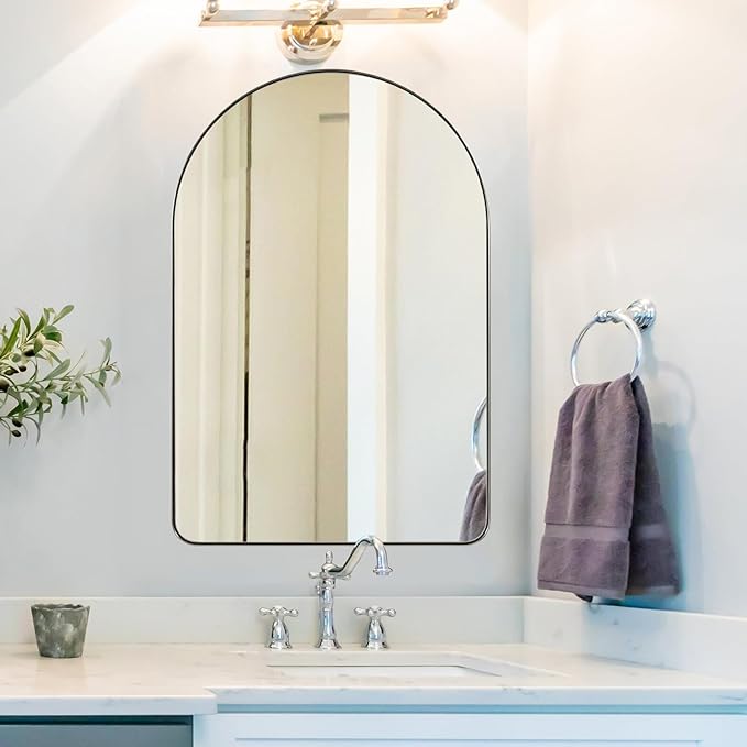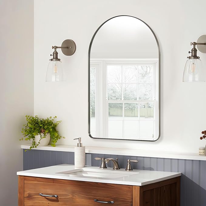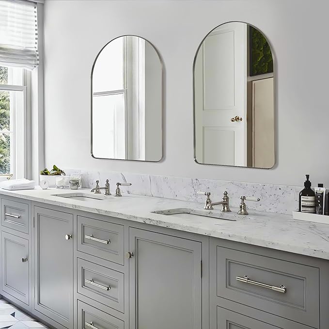 ANDY STAR Arched Mirror, 20″ x 30″ Brushed Nickle Bathroom Mirror in Stainless Steel Metal Frame, Arch Top Rounded Corner 1″ Deep Set Design Wall Mount Hangs Vertical