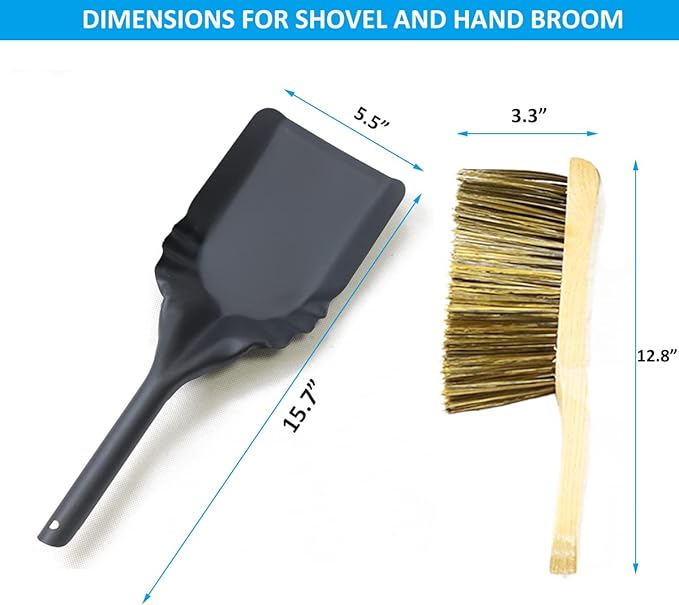 - 【Dimensions】Ash Bucket: 12.6″L x 12.6W” x 13″H ; Shovel : 15.7″L x 5″W; Material: Galvanized Iron with Powder Coating.