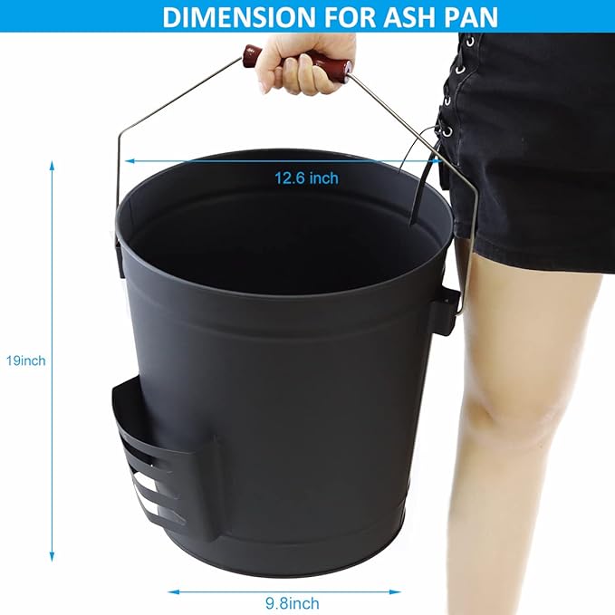 - 【Large Capacity】- 12.6 inches diameter bucket has large 5.15 gallon(19.5 L) capacity, allows the bucket can hold plenty of woods/ ashes/ coals/ fire glass from past fires., our metal ash bucket is large enough to hold ashes, coal, logs, wood chunks, and more. You get the benefit of not lugging wood, coal, or ashes in or out all night long in the freezing weather.