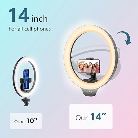 - Multi-Use Ring Light Tripod Kit: Perfect for FaceTime, TikTok, vlogging, and makeup applications, this upgraded 14″ Aureday ring light tripod kit offers a foldable design with a larger ring and softer lighting. Elevate the quality of your content, photography, and selfies with brighter, more professional lighting.