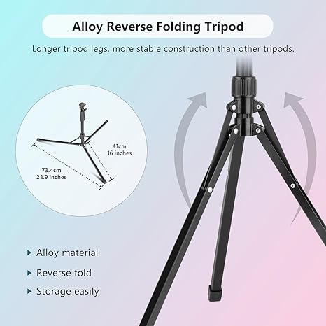 - Ultra-Sturdy Tripod Stand: Crafted from high-quality metal, this durable and stable tripod folds backward for compact portability. Its extended legs provide superior stability, ensuring reliable support for your phone and ring light.