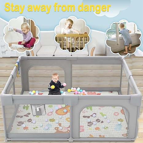 - Give Baby a Playmat: Baby Playpen with Mat is a safe activity center sturdy area for your baby to learn to crawl and explore the world! Parents can also do their things with peace of mind!