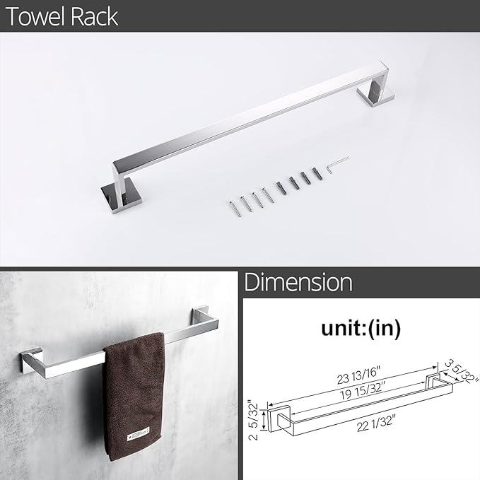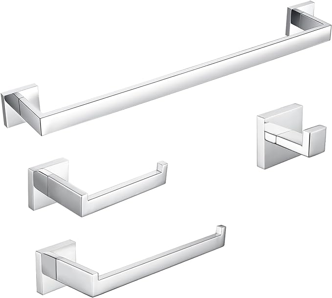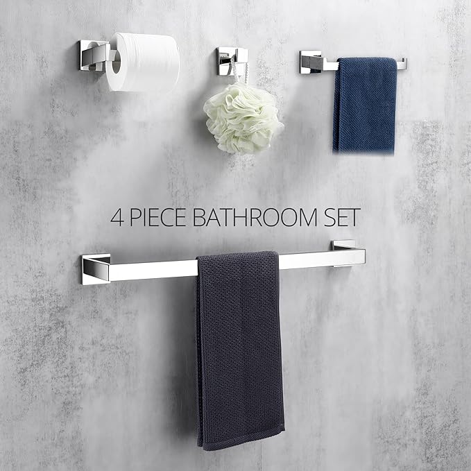 - Complete Set: Includes 16-inch towel bar, toilet paper holder, hand towel holder and robe hook. Has everything you need for your bathroom