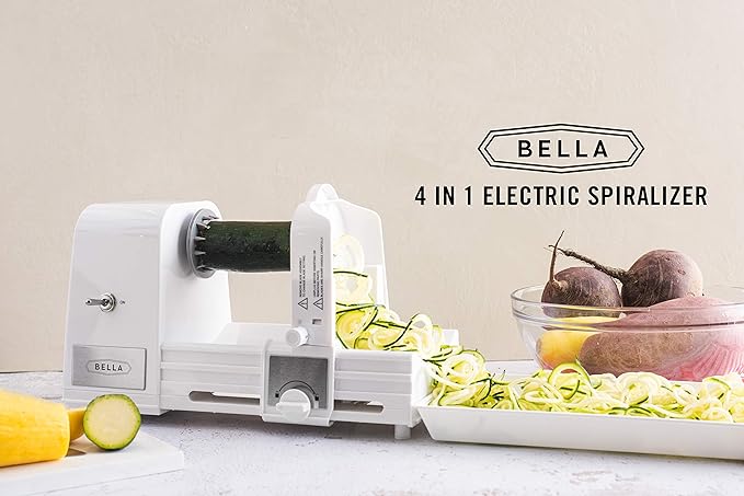 BELLA 4-in-1 Automatic Electric Spiralizer and Slicer, Quickly Prep Healthy Veggie or Fruit Spaghetti, Noodles or Ribbons, Easy To Clean, Recipe Book Included, White ***PLEASE SEE DESCRIPTION***
