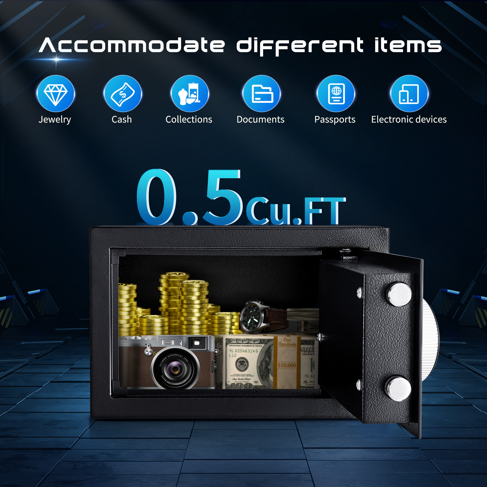If needed, the fireproof safe boxes for home have pre-assembled holes in the back so you can easily secure them to keep your valuables safe. Also, the compact size of 0.5 cubic feet is easy to conceal in a drawer, cabinet, closet, or nightstand.