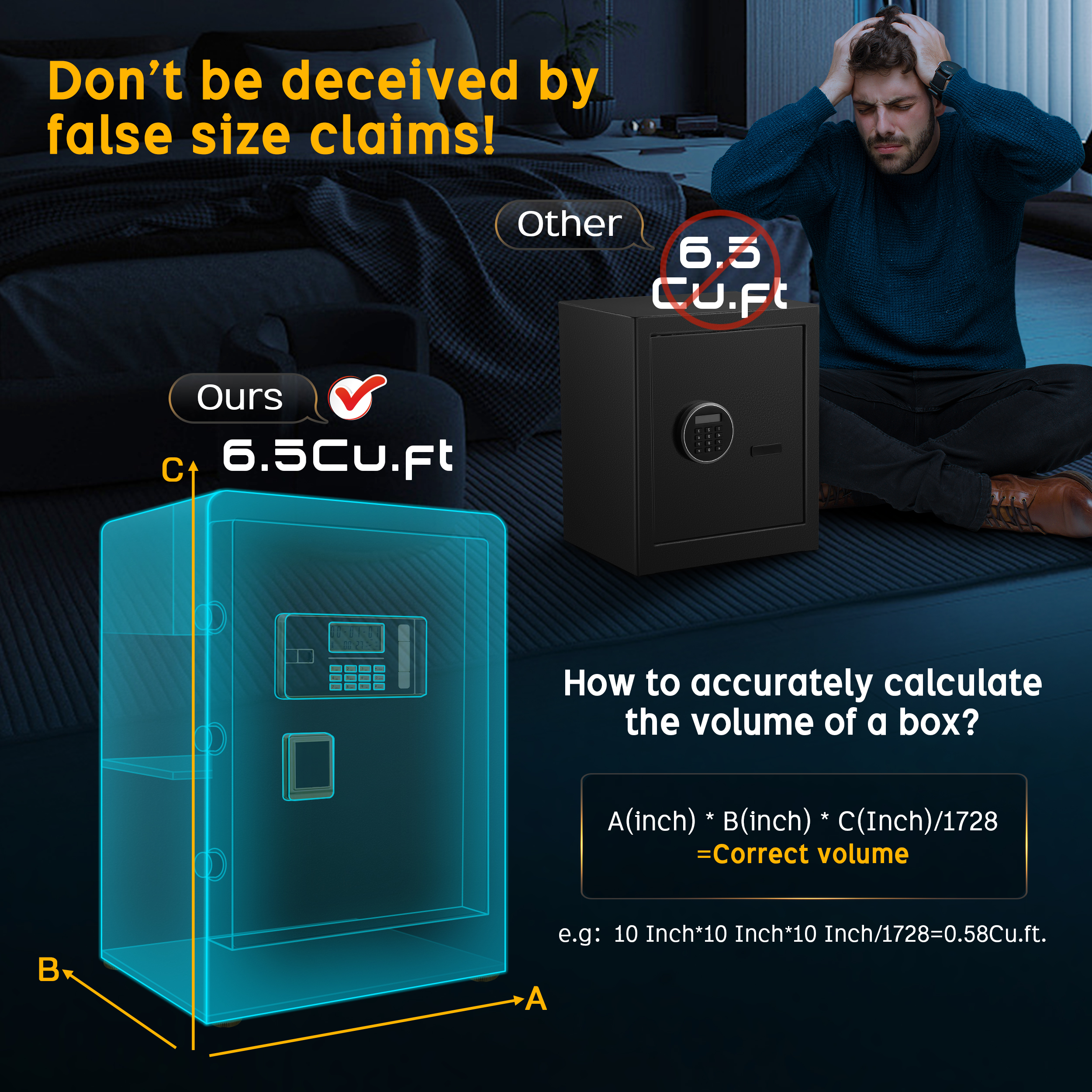 Our safe box is designed with 2*18mm solid locking bolts, built-in hinges, anti-collision, and anti-pry micro slits, with excellent anti-prying and anti-theft performance. External dimensions of our safes: 15.16*10.87*11.61″. With an additional fireproof and waterproof money pocket (9.36�13.65 inches), the combination safe and fireproof bag will protect your valuables from fire, hurricanes, and earthquakes.