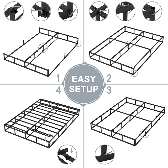 - Quick and Easy Assembly: Metal box spring queen with integrated structure design and all the necessary tools included, just simply follow the easy to understand instructions for quick assembly