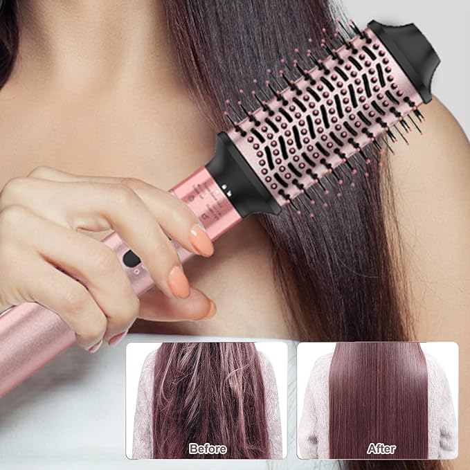 - [No Heat Damage] The hair dryer releases thousands of negative ion airflows to care for your hair during drying. Hot air brush with intelligent heat regulation setting that automatically adjusts a stable temperature and adopts a ceramic coating process to smooth the static frizz effectively, get luxury salon hair care to volumize and shine without heat damage.