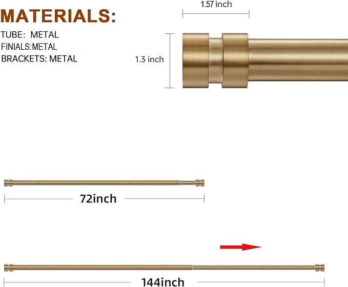 - 【Adjustable Curtain Rod】Curtain rod has 3 sizes, which can extend from 28 to 48 inches,38 to 72 inches, and 72 to 144 inches.