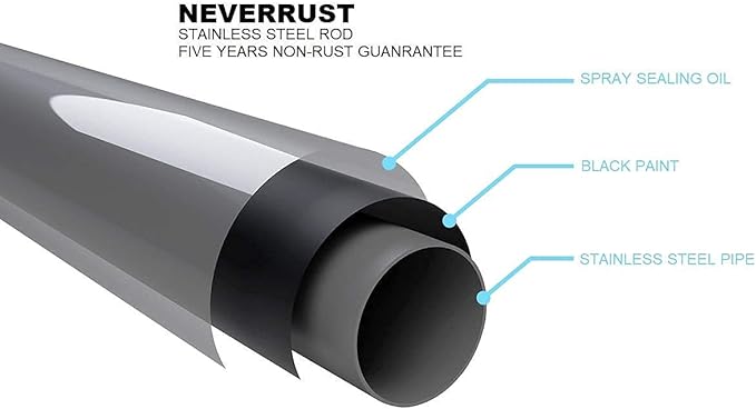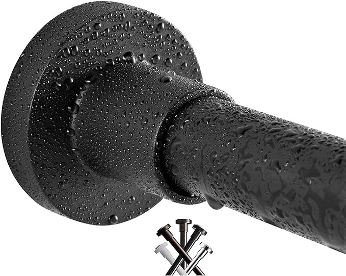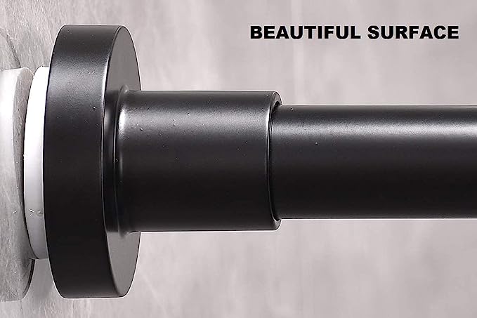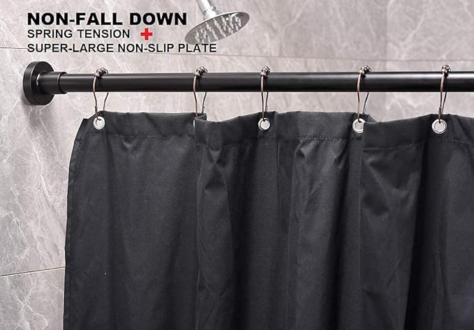 BRIOFOX Shower Curtain Rod 43-72 Inches Matte Black, Never Rust and Non-Fall Down Spring Tension Rod, Stainless Steel