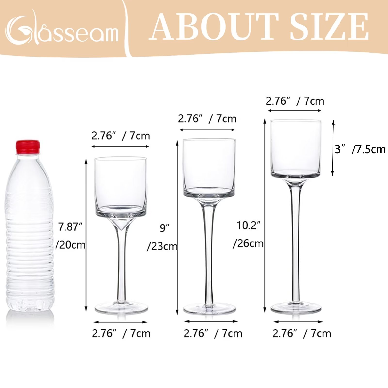 - Dimensions: 3 different heights in 7.87″, 9″and 10.2″, opening diameter around 2.76″.