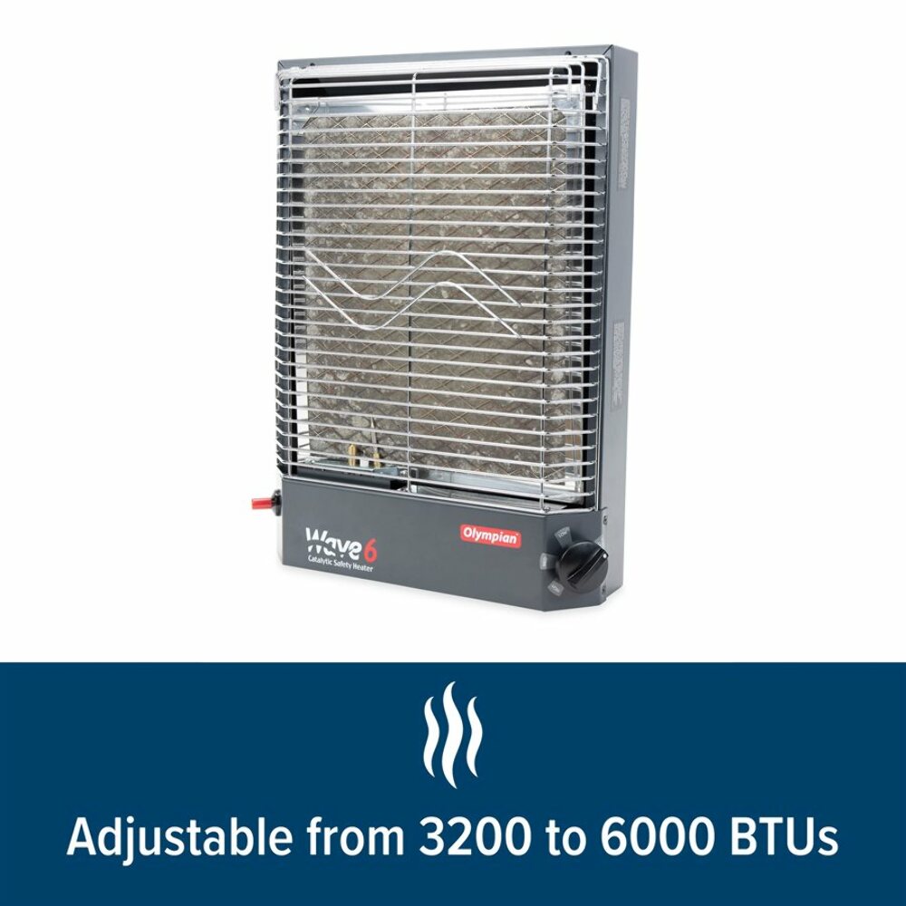 Camco Olympian Wave 6 Catalytic Safety Heater | Adjustable from 3200 to 6000 BTUs | Black (57341)
