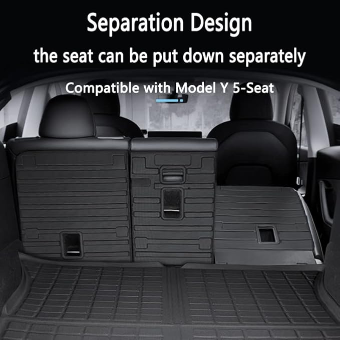 - Custom Design – Compatible with 2020 2021 2022 2023 2024 Model Y with 5 seats,Not for 7 seats model,include cargo mat and second row back cover. Manufacturing based on 3D laser scanning modelling technology perfect fit the Interior contour of the vehicle,no need trimming