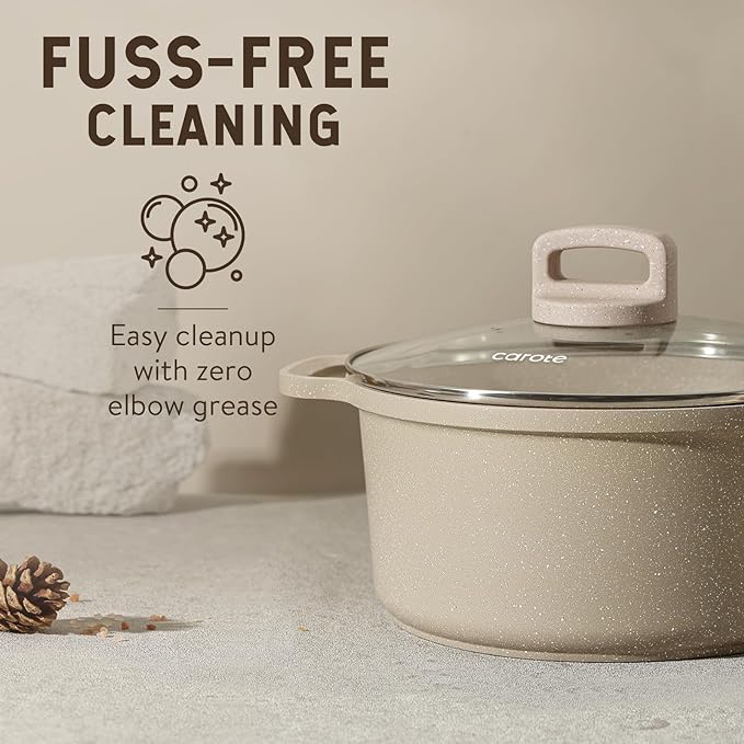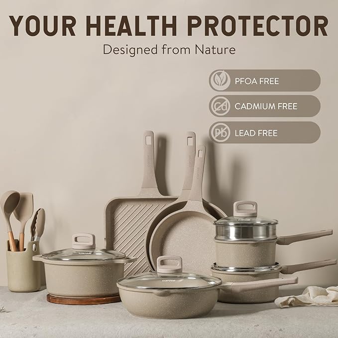 CAROTE Pots and Pans Set Non Stick, 16Pcs Kitchen Cookware Set, Stackable Induction Cookware, Pot and Pan set, Pans for Cooking, Taupe Granite ***PLEASE SEE DESCRIPTION***