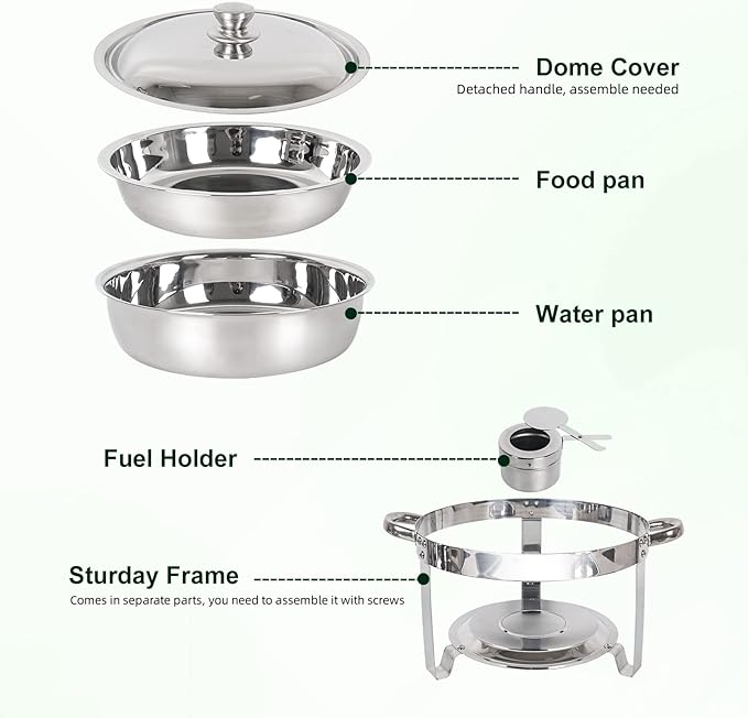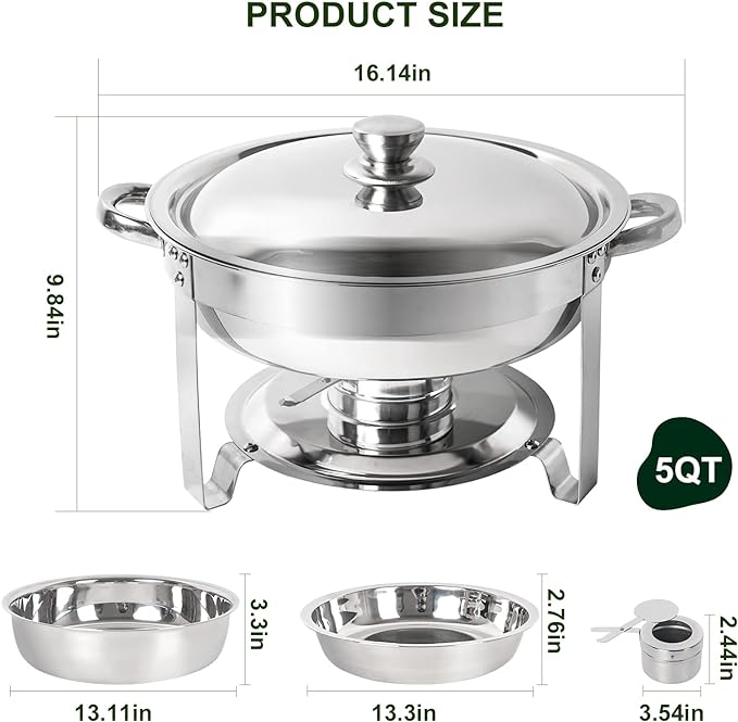 • Upgraded Stainless Steel: Made with thickened stainless steel for superior durability and corrosion resistance, each chafing dish is tested to ensure safety and longevity. Combining the strength of stainless steel and an elegant mirror-finished surface, it is designed ideally for a variety of chafing events